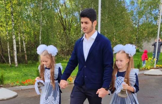 Наступило время первого школьного звонка в этом учебном году. Это почетное право было предоставлено учащемуся 11А класса Саакян Эрику и первоклассницам Ульяне и Анне Силаевым.