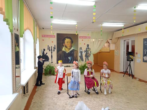 А в школьном фойе музыкальные номера чередовались с инсценированными отрывками из произведений А.С. Пушкина, ребята показали настоящее театральное и музыкальное мастерство.